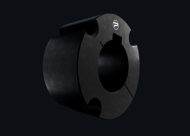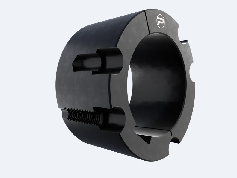 Kuželové pouzdro z litiny (GG25) s fosfátovanou povrchovou úpravou, dokončeným otvorem a drážkou pro pero. Vhodné pro mnoho různých řemenic, řetězových kol a spojek.